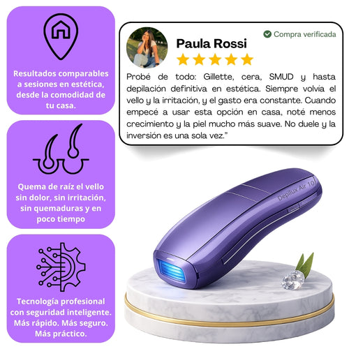 Elimina el vello no deseado desde casa con tecnología clínicamente probada. Resultados visibles desde la primera sesión.